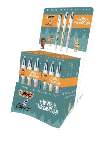 Bic 4 Colours Winter Wonderland Expositor con 10 Packs de 3 Boligrafos de Bola Retractil – Punta Media de 1.0mm – 3 Diseños Diferentes