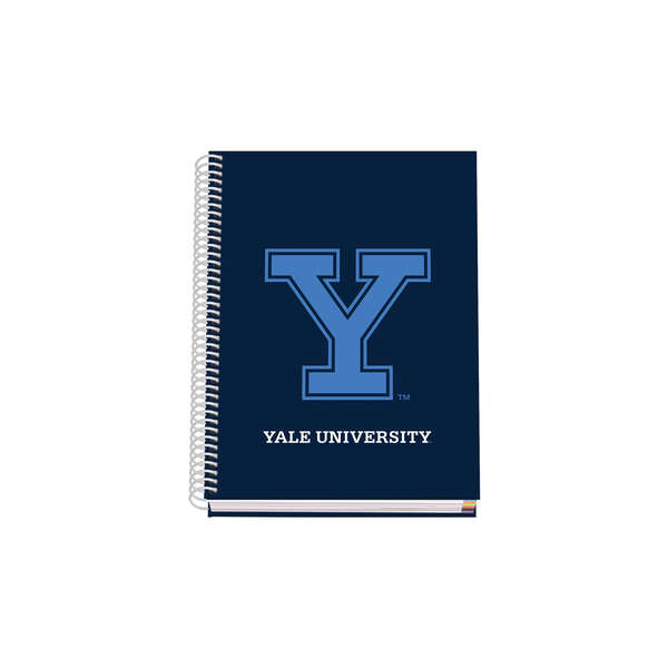 Cuaderno en espiral de tapa dura tamaño A5 ( 162 x 210 mm. Cubierta en cartón forrado con papel impreso a todo color y plastificado brillo. Guardas impresas. Cuaderno con espiral metálico color Blanco. Interior de 100 hojas en papel offset de 90 gramos microperforadas, con taladros y cuadrícula de 5 mm con banda de color. Con certificado FSC Mixto