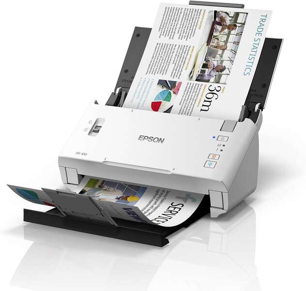 El DS-410 presenta un diseño resistente para dar respuesta a cualquier necesidad en la oficina y mantenerlo protegido en cualquier tipo de entorno. Además, es muy compacto, por lo que ocupa el mínimo espacio en la mesa y es ideal hasta para las oficinas más pequeñas. Escanea a velocidades de hasta 26 ppm/52 ipm y es compatible con grosores de papel de entre 50 g/m² y 209 g/m². Además, el modo A3 manual permite el escaneado de documentos originales de mayor tamaño.