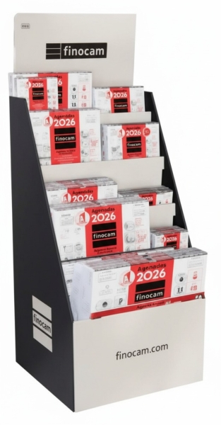 Finocam Pack de 125 Expositores de Pie con Calendarios Neutros Surtidos para el año 2026. Cada unidad consiste en un expositor de cartón diseñado para una exhibición ordenada y eficiente en puntos de venta. Incluye 125 calendarios neutros, distribuidos de manera surtida, en formato anual para el período de enero a diciembre de 2026. La estructura del expositor está fabricada en cartón resistente, facilitando su montaje y transporte. Producto en caja individual, en idioma español, ideal para promover la organización y la presentación de calendarios en tiendas y establecimientos comerciales.