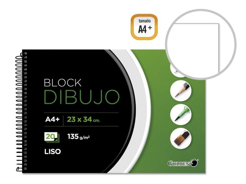 -Bloc de dibujo con 20 hojas tamaño A4+.