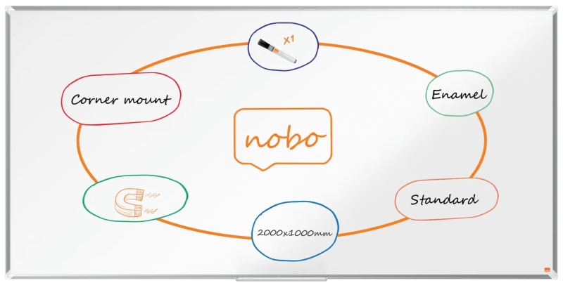 Nobo Premium Plus Pizarra Magnetica de Acero Vitrificado 2000x1000mm – Montaje en Esquina – Superficie de Borrado Superior – Color Blanco