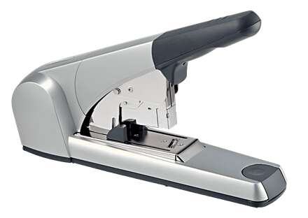 Grapadora de grapado plano para gruesos para tareas profesionales. Con un práctico indicador de recarga. Ideal para servicios postales y oficinas.