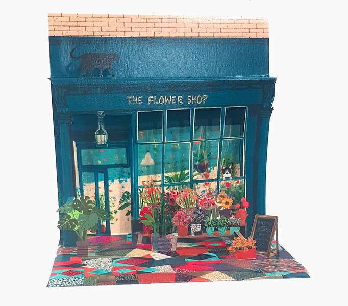 Pictura Tarjeta 3D Pop-Up – 16x16cm – Tematica Floristeria – Embolsada Individualmente – Incluye Sobre Blanco – Papel con Certificacion FSC