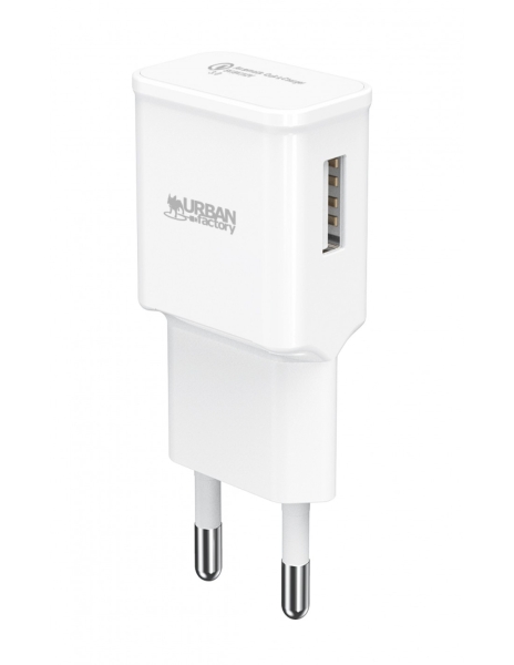 Urban Factory Cargador de Pared USB 3A – Qualcomm 3.0 – Enchufe UE – Color Blanco